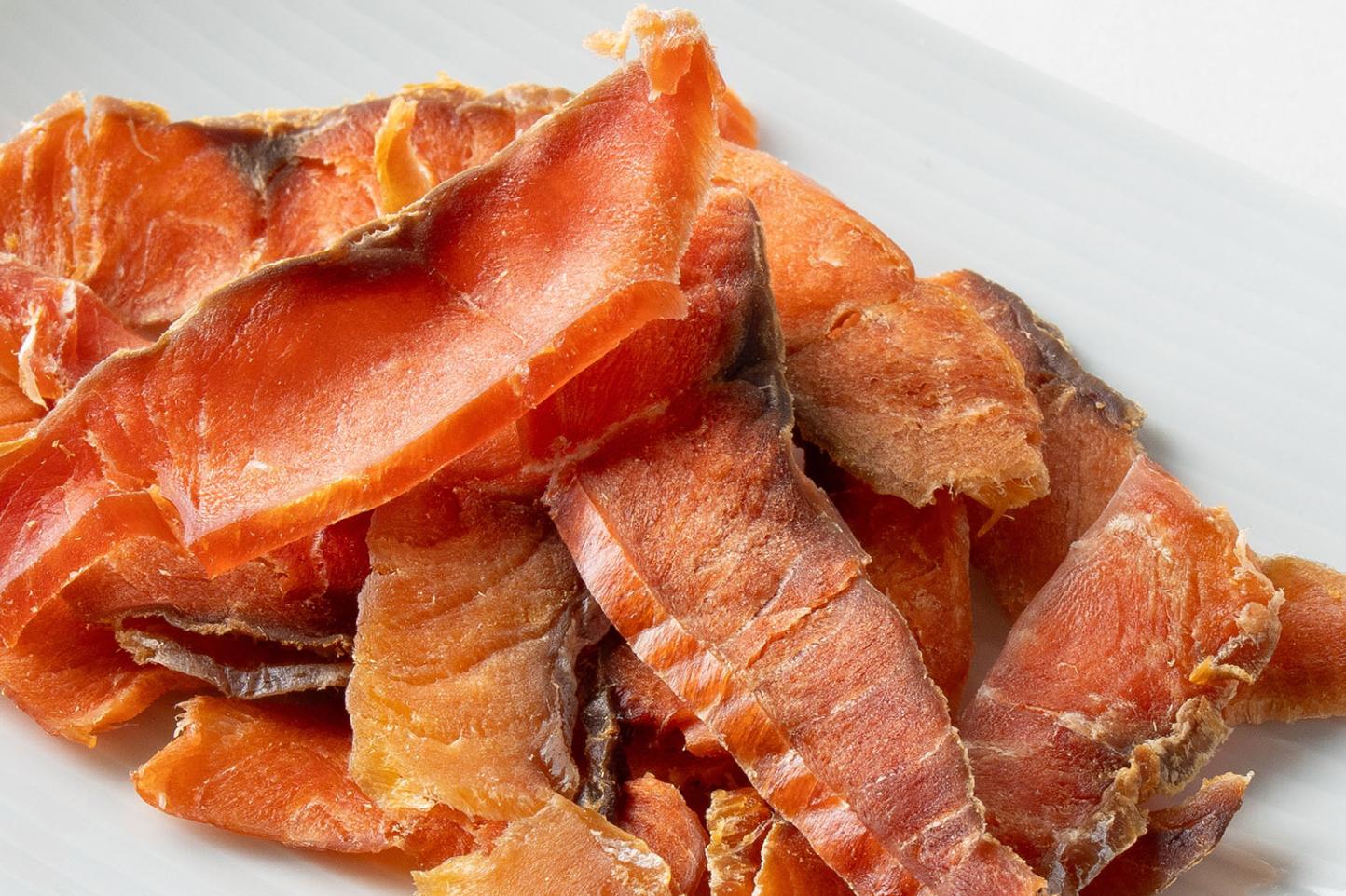 北海道沖で漁獲された新鮮な鮭を使用し、皮を丁寧に取り除いた後、食べやすくスライスしたソフトタイプのとばです。