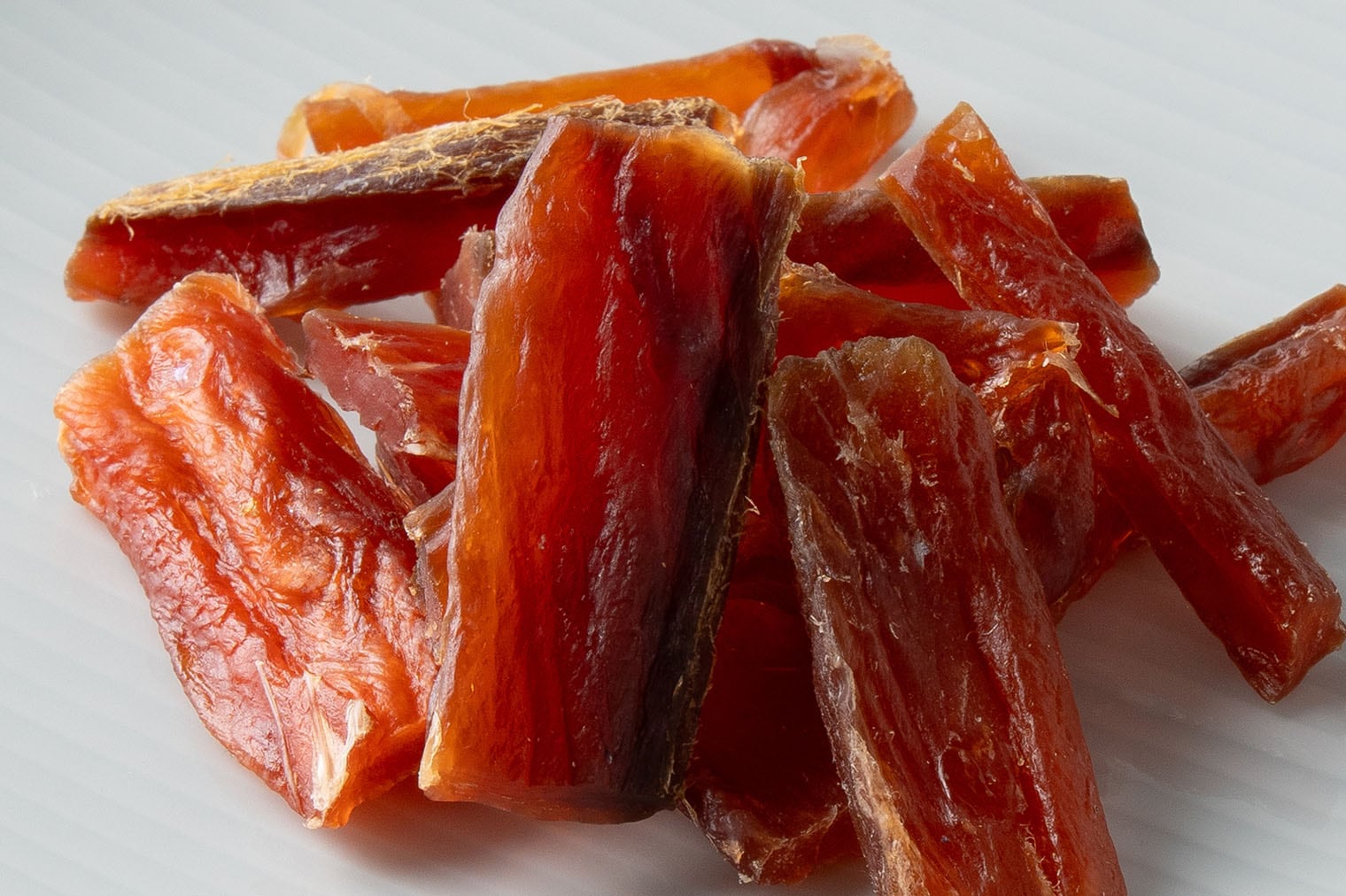 じっくりと乾燥させることで、鮭本来の旨みと香ばしさを凝縮した、やわらかな食感の鮭とばです。
