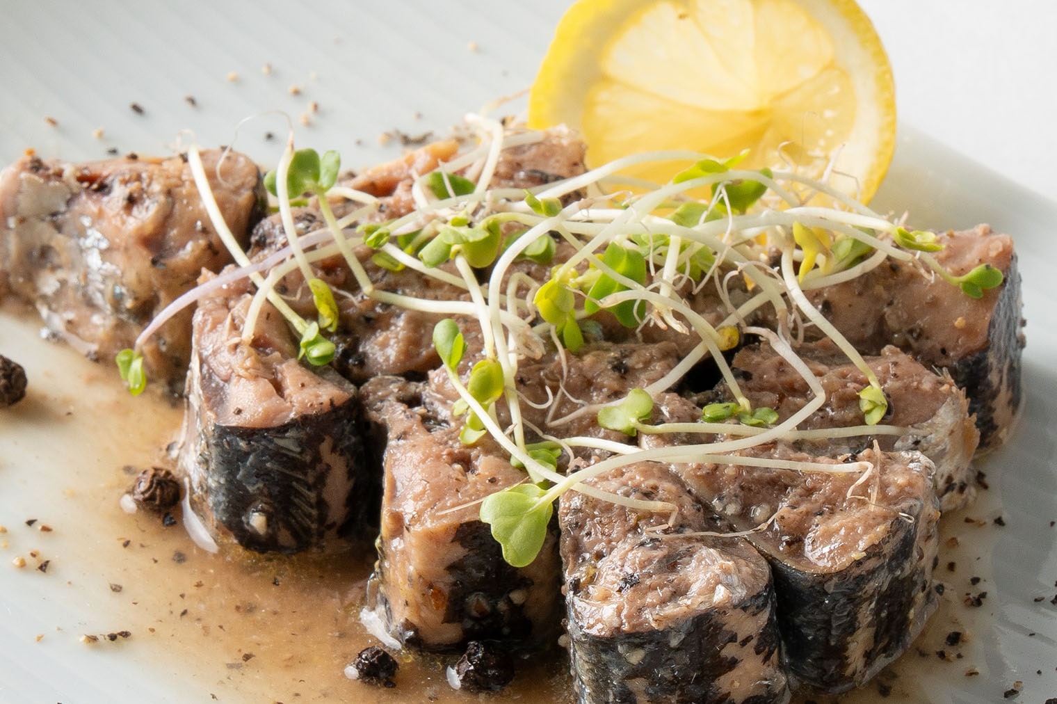 その独特の味覚を活かし、さんまを黒胡椒醤油でじっくり煮込んだ、風味豊かな味わいです。