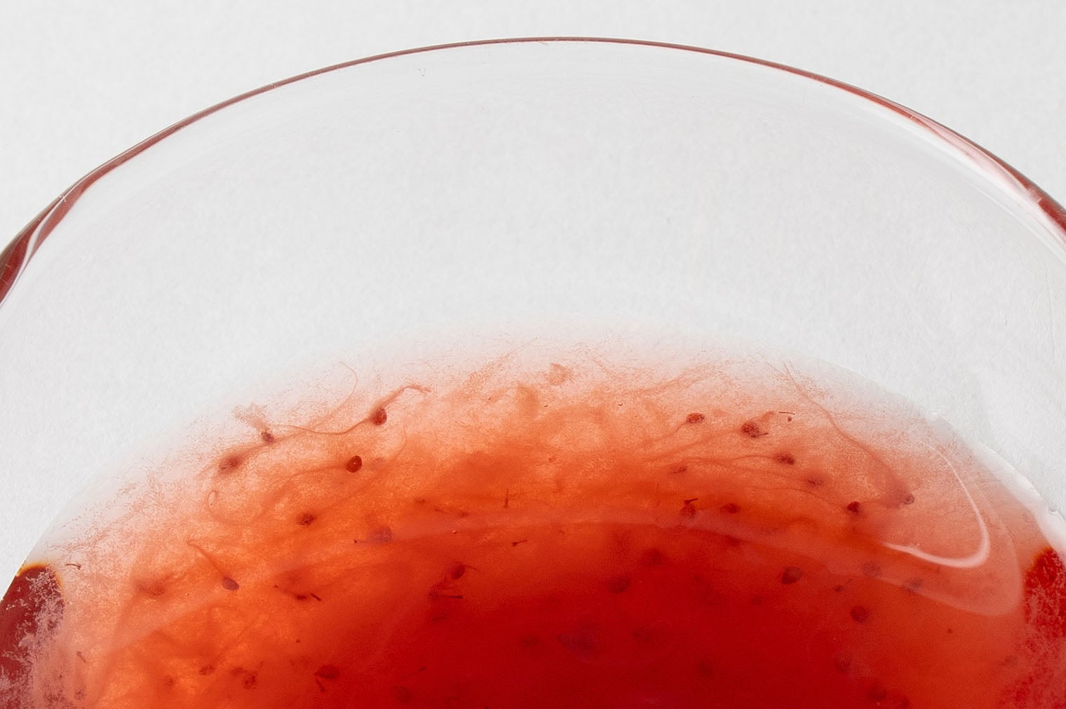 北海道豊浦町産の、中まで赤いいちご「ジャンボレッド」を100%使用した、果肉感たっぷりのいちごソースです。