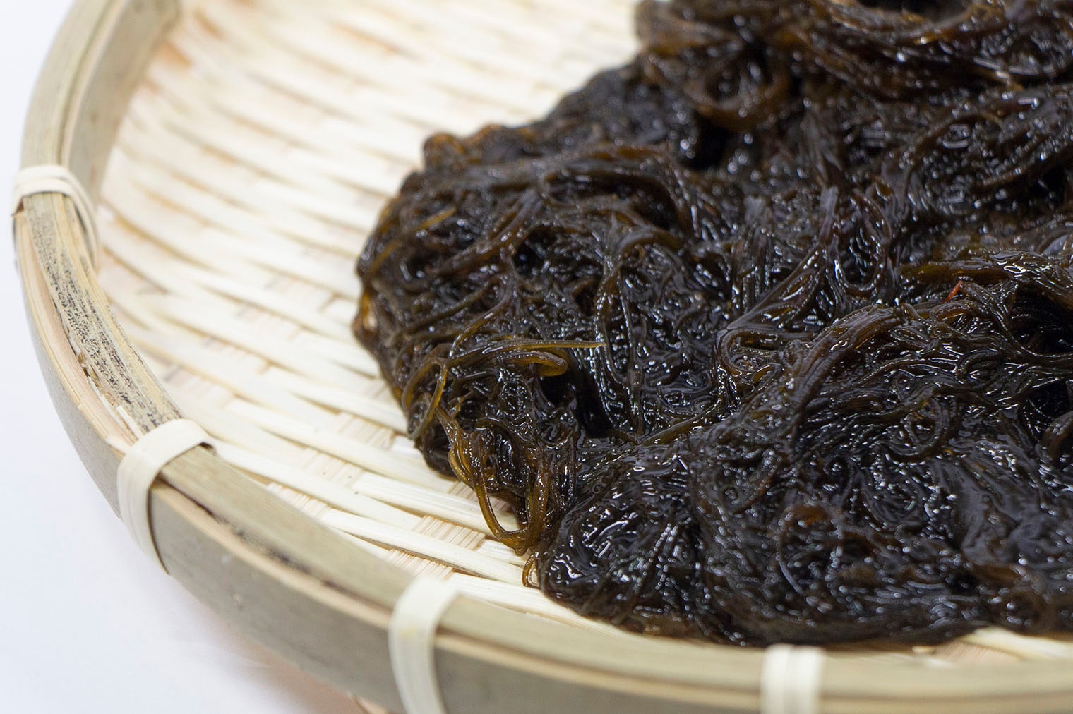 食感の良さを引き出すため、さらに厳選したものだけを使用。粘りが非常に強いのが特徴で、水分を加えて軽く混ぜるだけで、生もずくのような食感がよみがえります。