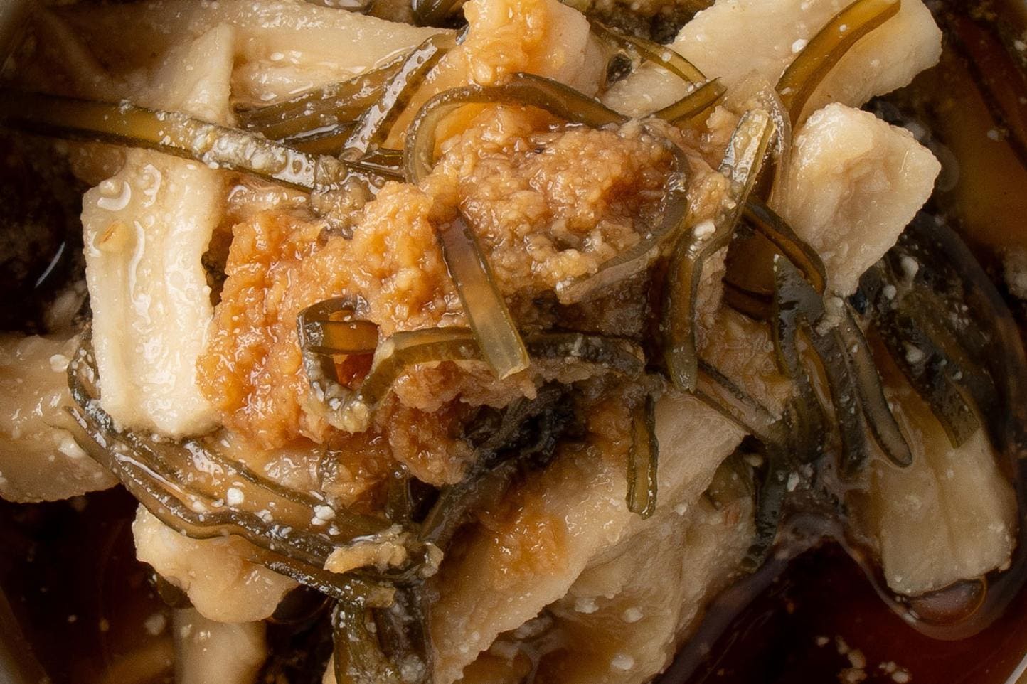 素材の味を活かした大根と、出汁のよく出る日高昆布、香りと辛味がきいた山わさびパウダーを一緒に漬け込むことで、コリコリとした食感と旨味、そしてツーンと突き抜ける辛味がアクセントの、北海道ならではの醤油漬けが完成します。